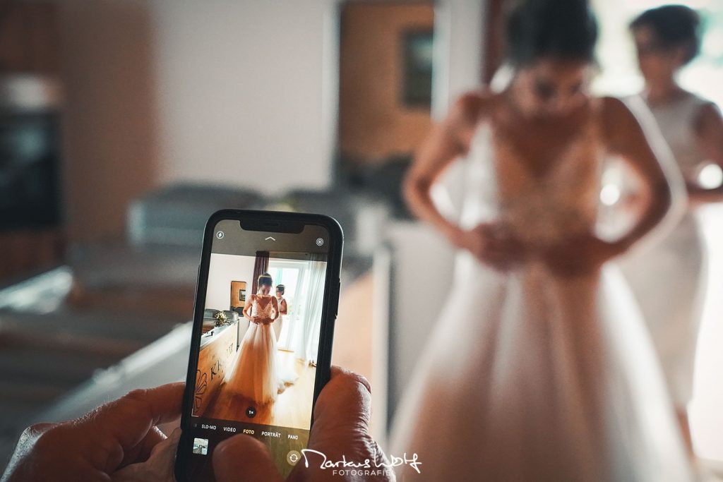 Das Getting-Ready (Friseur, Visa und Ankleiden) findet normalerweise getrennt voneinander statt. Man sieht sich dann erst beim First-Look. Aber genau das ist der Knackpunkt an der Sache. Bereits bei diesen Vorbereitungen gibt es viele schöne und vor allem emotionale Momente ohne Ende, an denen man den Partner vielleicht später teilhaben lassen möchte. Wie? Richtig, mit Bildern, die all diese Momente und Aktionen festhalten und dokumentieren. First-Look, Eintreffen der Gäste, Trauung, Gratulanten, Gruppenbilder, Sektempfang, Fahrt zur Party-Location und und und…